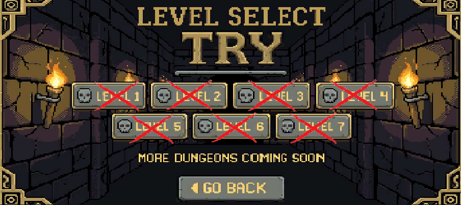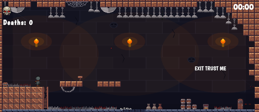 TRY is a punishing 2D dungeon platformer with 7 handcrafted levels designed to make you suffer. Every trap is placed with love. Every fake door is placed with malice. The dungeon wants you dead — how many times will you oblige?